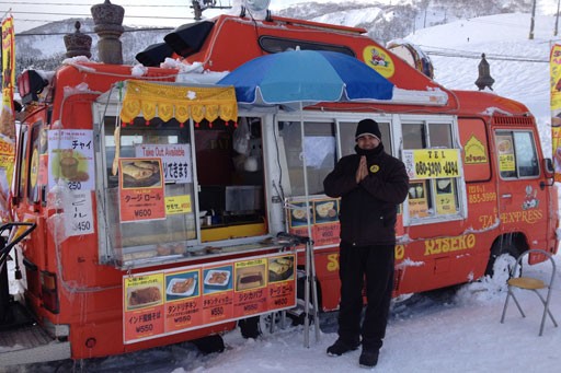 Located in Middle Hirafu, right beside the Seicomart and the Niseko Hirafu Safety Information Center and across from Tamashi Bar (Taj Express by Taj Mahal).